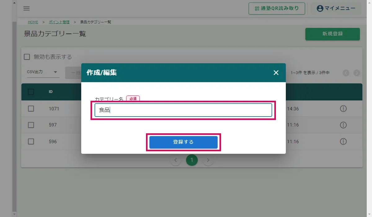 景品のカテゴリを作成する方法を説明します。