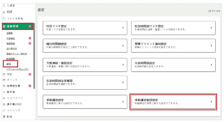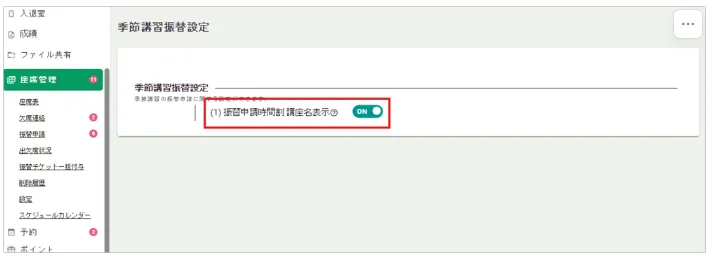 1.季節講習振替設定を表示
