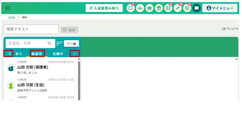 休会中の生徒・保護者の連絡履歴の確認方法