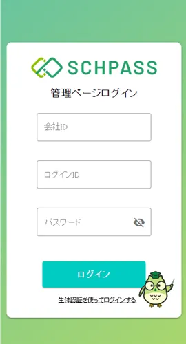 管理画面自体にログインができない場合は、スクパスサポートまでご連絡ください。