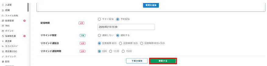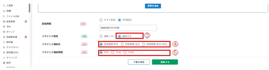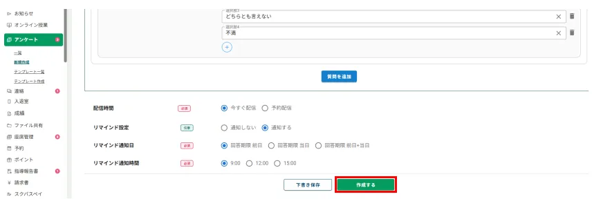 ②アンケート内容を入力し、リマインド設定「通知する」を選択します。