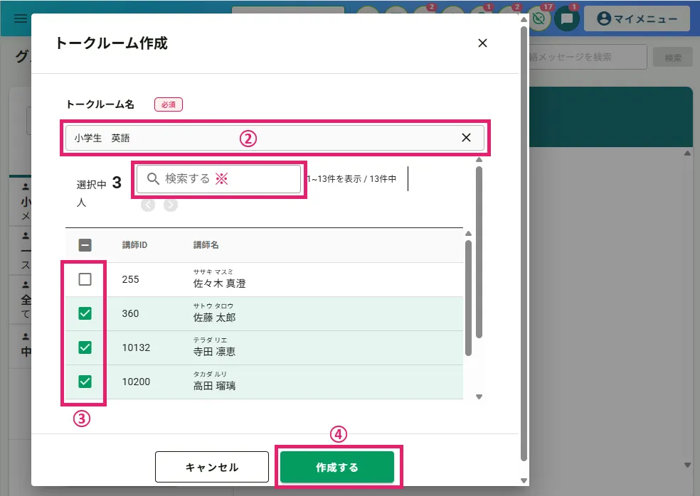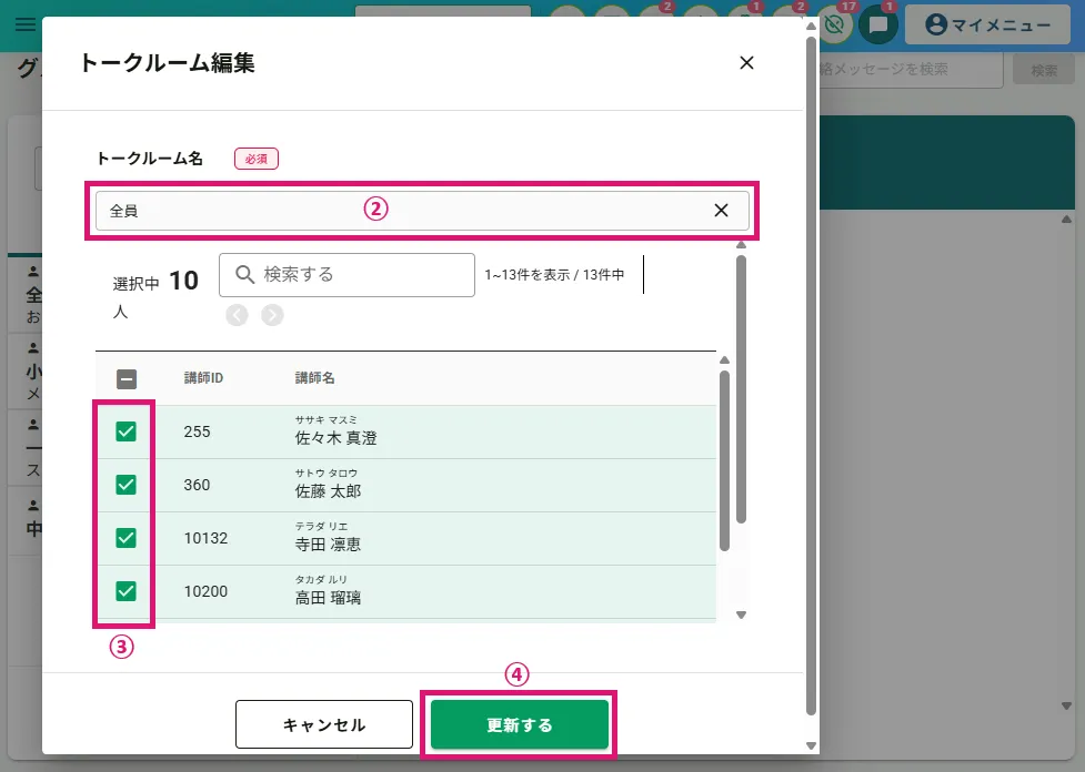 【講師グループチャット】トークルームの作成・編集・削除方法