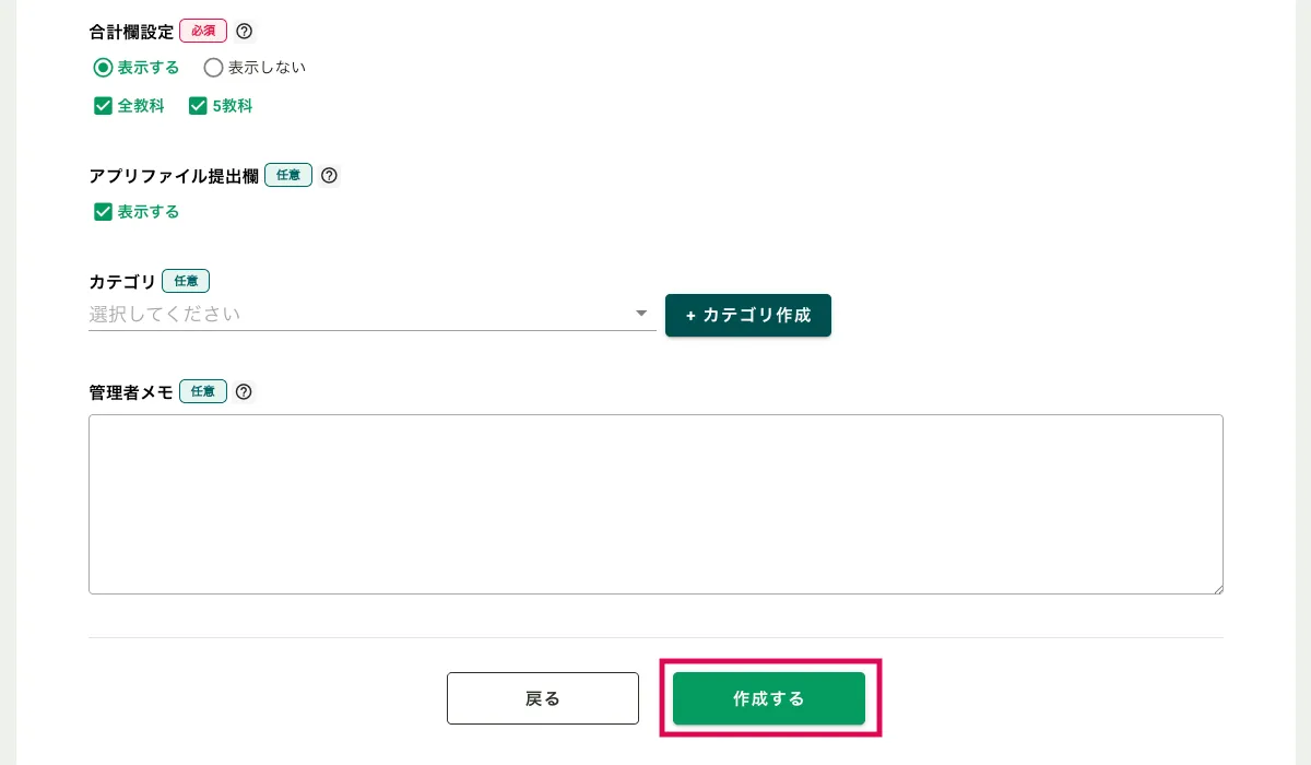 ※「作成する」ボタンが押せない場合は、必須項目がすべて入力されているかご確認ください。
