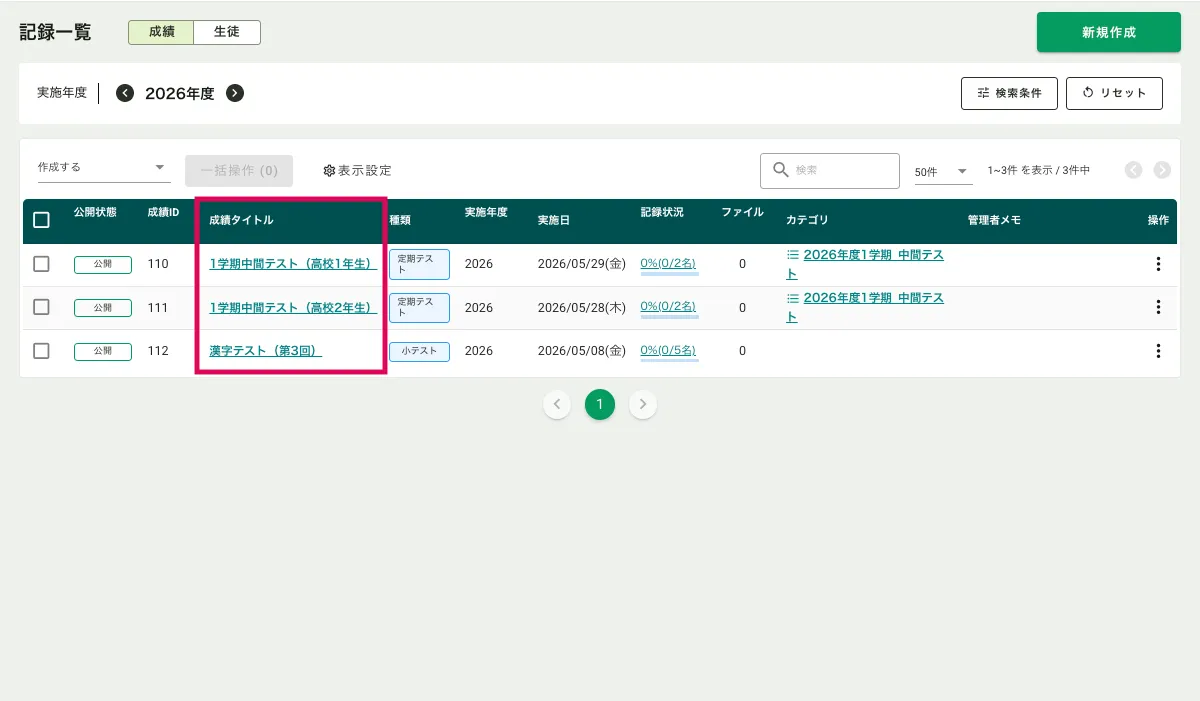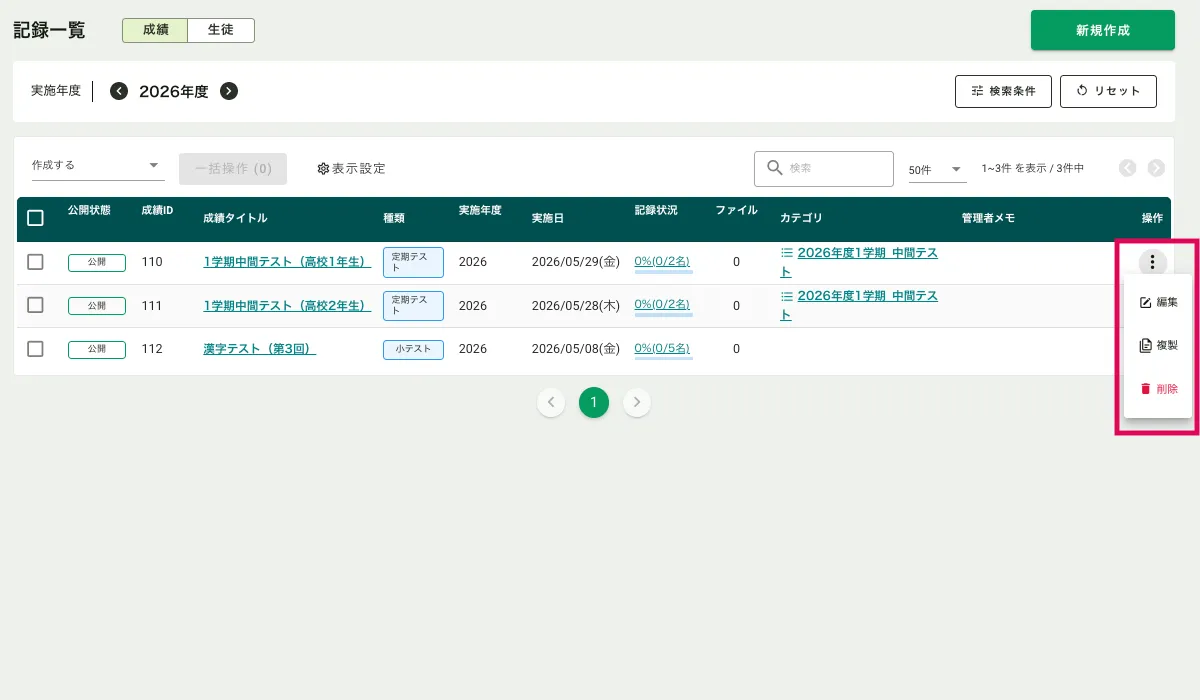 作成済みの成績記録を閲覧・編集する方法について説明します。