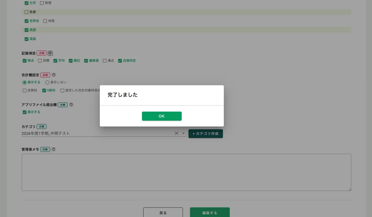 ⑤「完了しました」というポップアップが出てくれば編集は完了です。