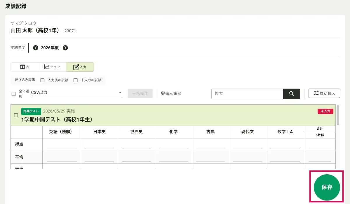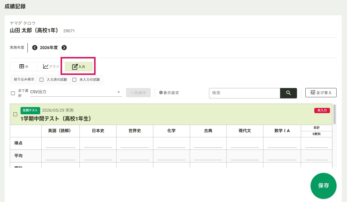 ・「入力」ボタンをクリックすると成績の表内に直接入力ができるようになります。