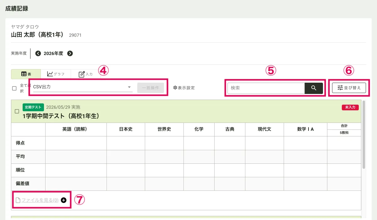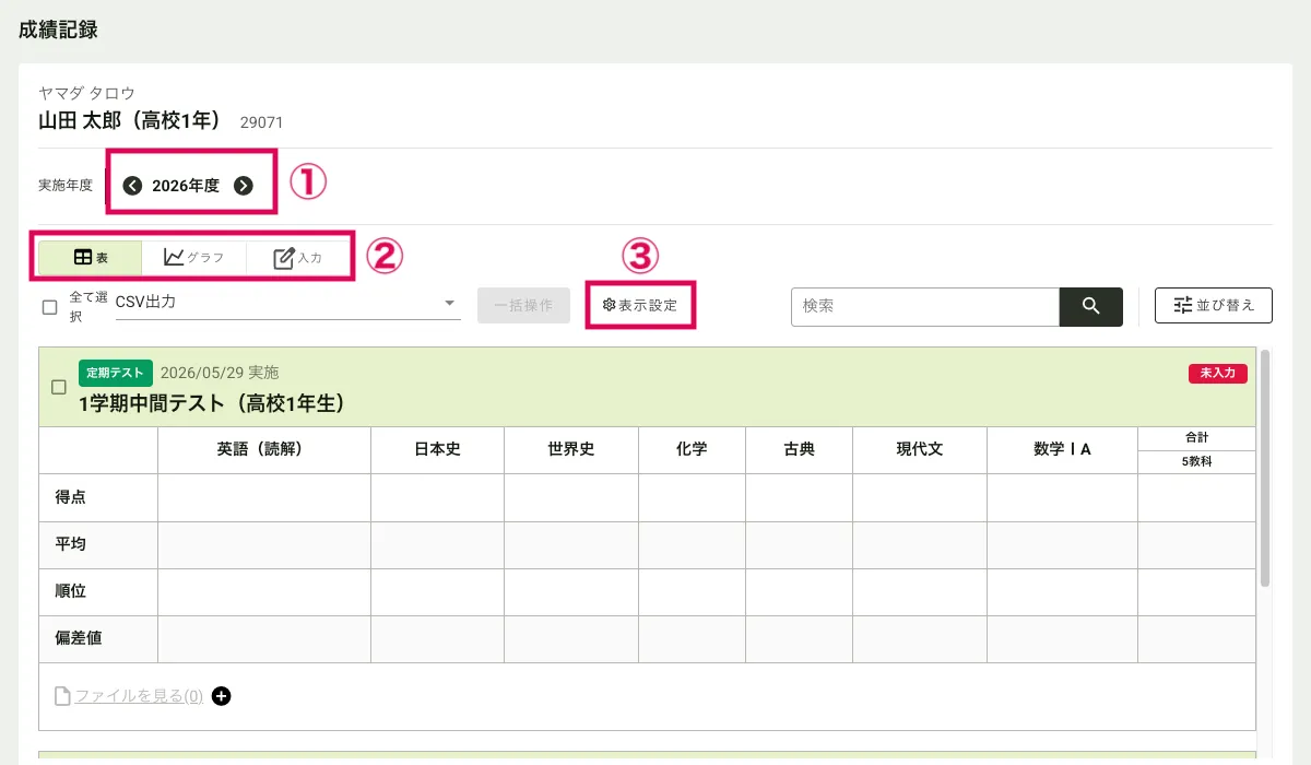 グラフ機能の詳細についてはこちら:生徒の成績をグラフで確認する方法