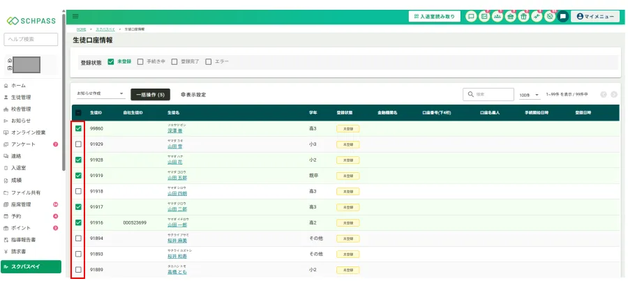 【スクパスペイ】生徒の口座登録状況の確認方法