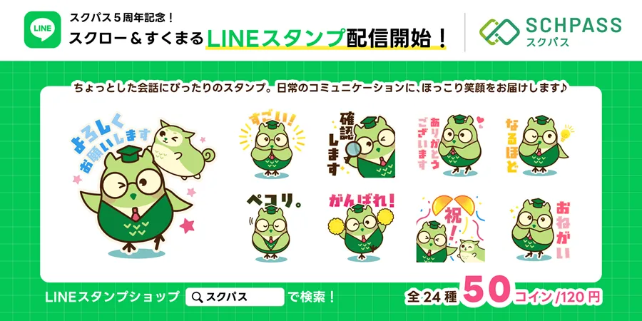 スクパス5周年記念!公式LINEスタンプを配信中です✨