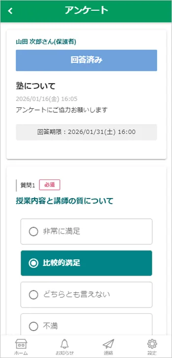 回答期限内のアンケートの回答を変更できます。